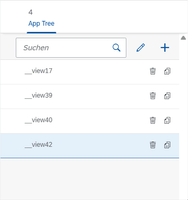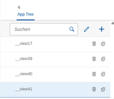In dieser Darstellung finden Sie alle Views, die Sie bereits zur Applikation hinzugefügt haben. Diese Views sind dabei verschiedene Seiten, die alle unterschiedliche Informationen darstellen (ähnlich zu verschiedene Seiten auf einer Webpage). Möglichkeiten beim Arbeiten mit dem View-Tree: