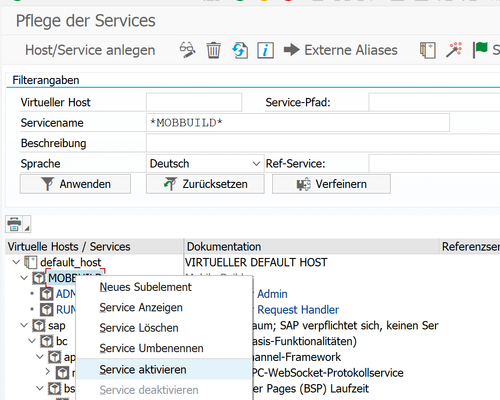Folgende Services müssen in der Transaktion SICF aktiviert werden: