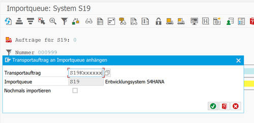 Transport in Import-Queue anhängen