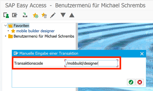 Transaktionen des "mobile builder" in die Favoriten hinzufügen: