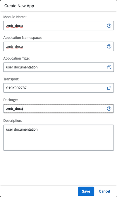• Paket: Geben Sie die SAP-Paketnummer ein, in der die Applikation erstellt werden soll