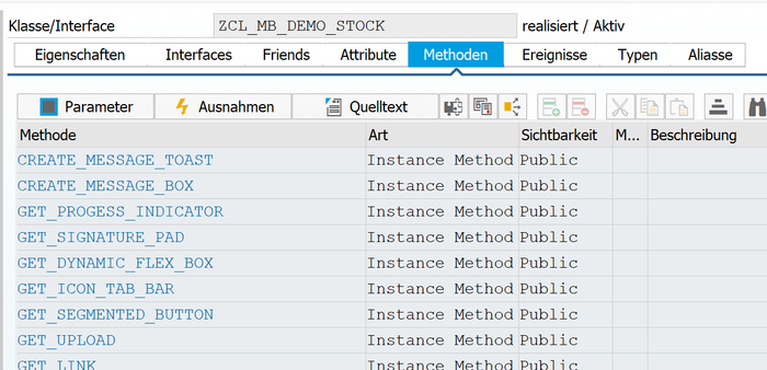 Die von der Oberklasse /mobbuild/cl_request_base geerbten Methoden stehen als Hilfsmethoden zur Verfügung. Sie können genutzt werden, um auf die UI5-Applikation Einfluss zu nehmen und Standardoperationen zu vereinfachen.